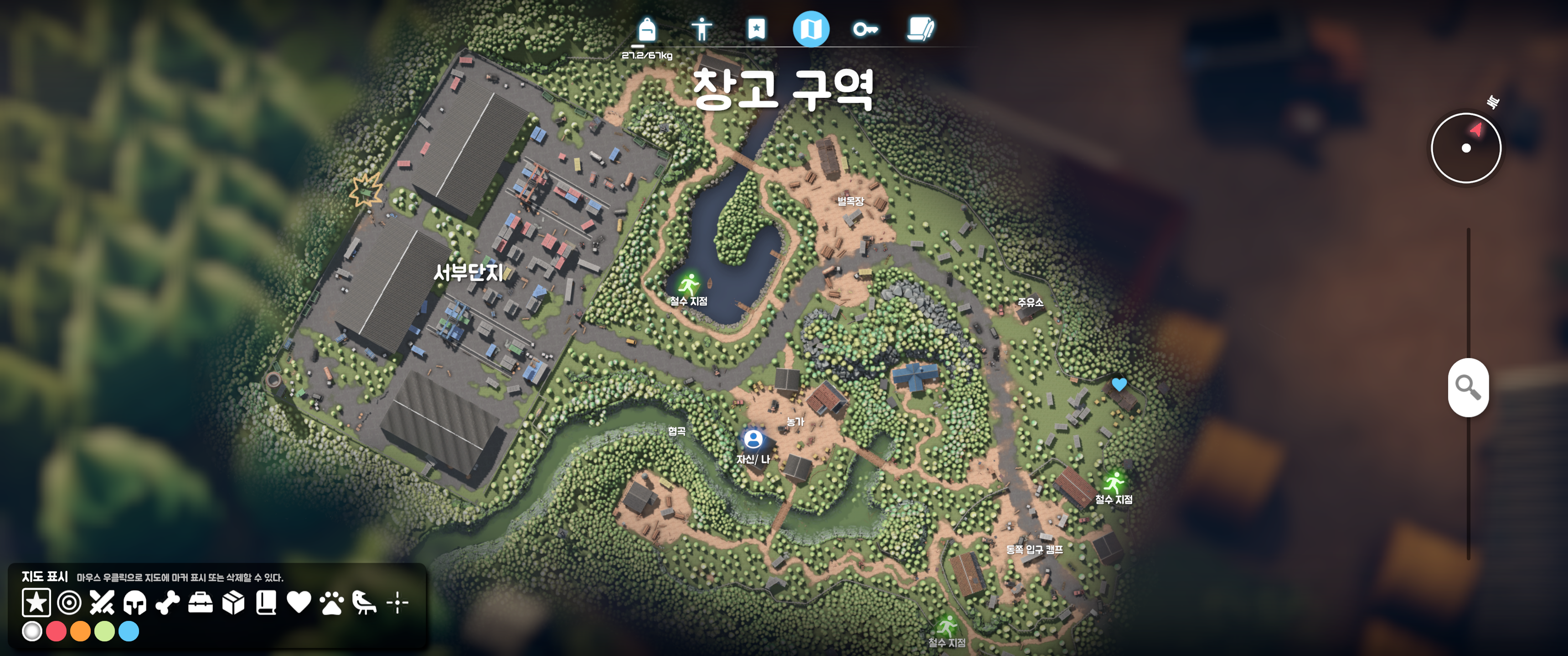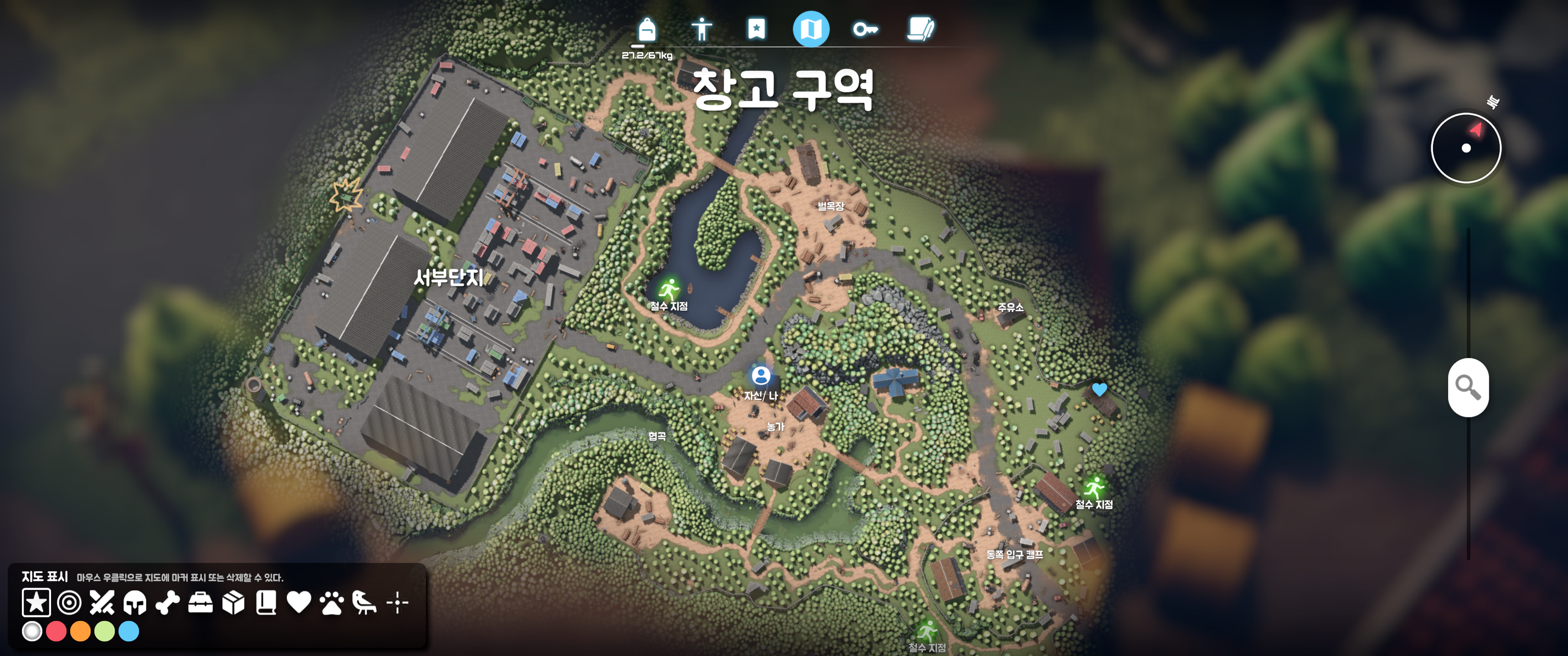 [창고 구역] 중앙의 농가 지역에 있는 검은 지붕 3곳에 각각 포인트가 위치합니다.