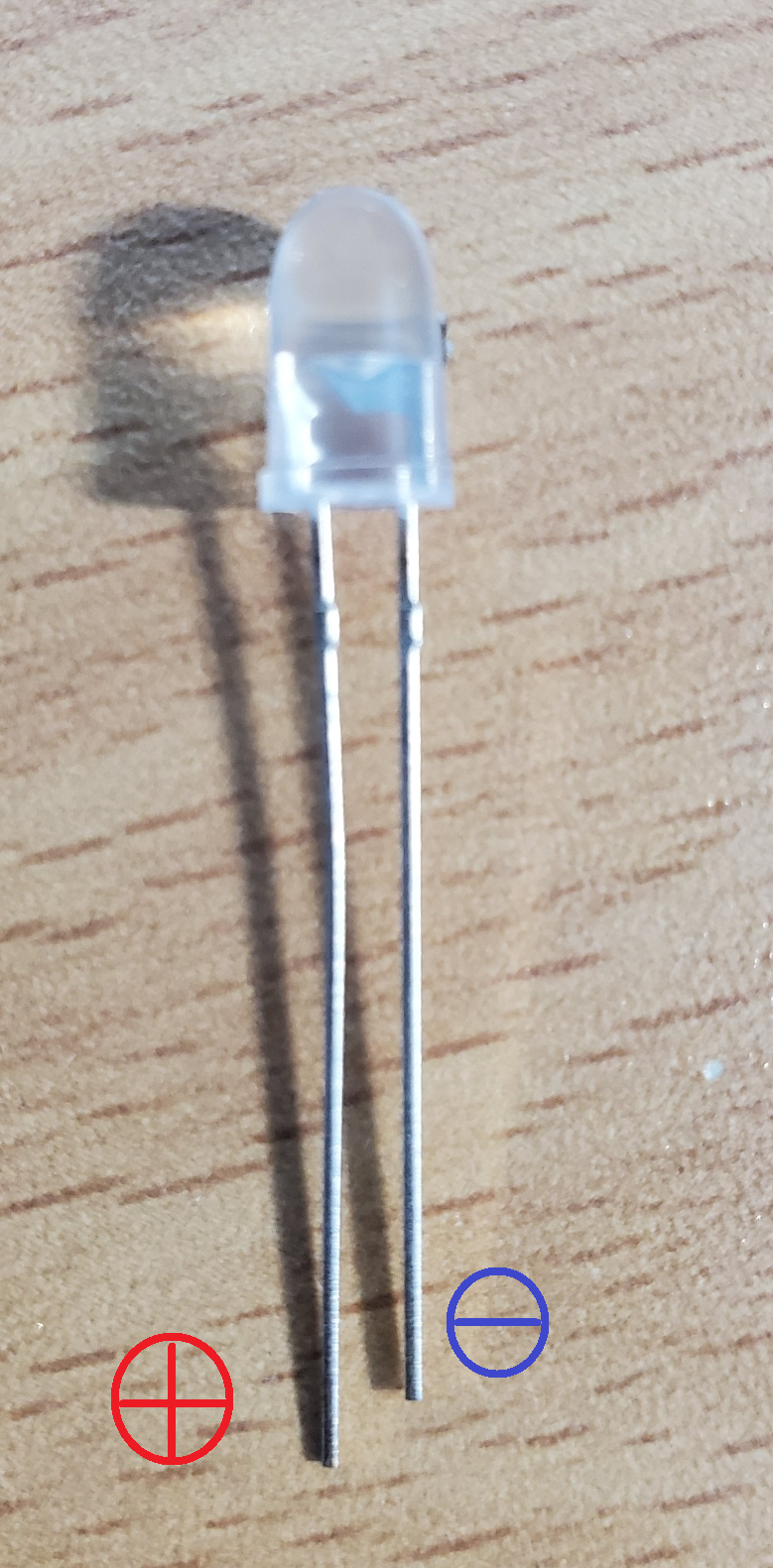 LED는 발이 긴 쪽이 +극, 짧은쪽이 -극 방향이 되도록 해야한다.