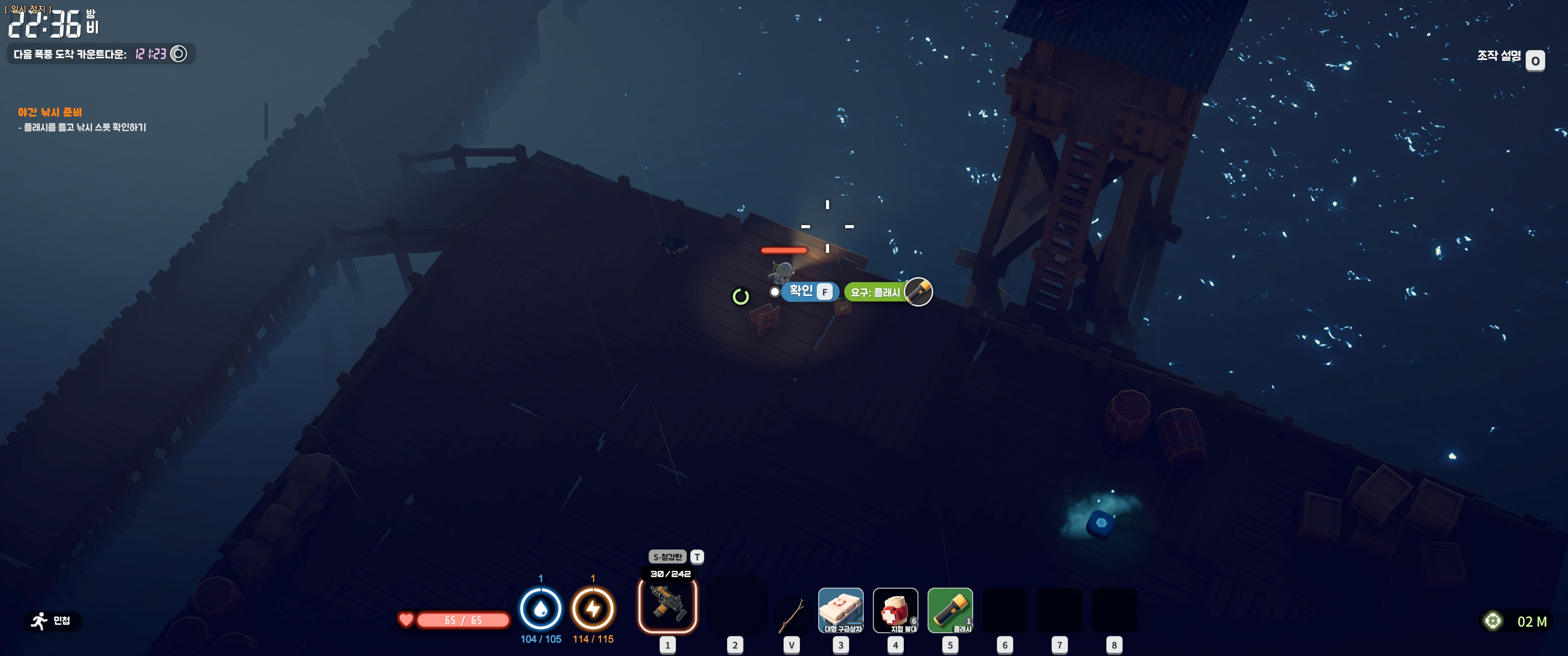 플래시를 들고 낚시 스폿 확인하기