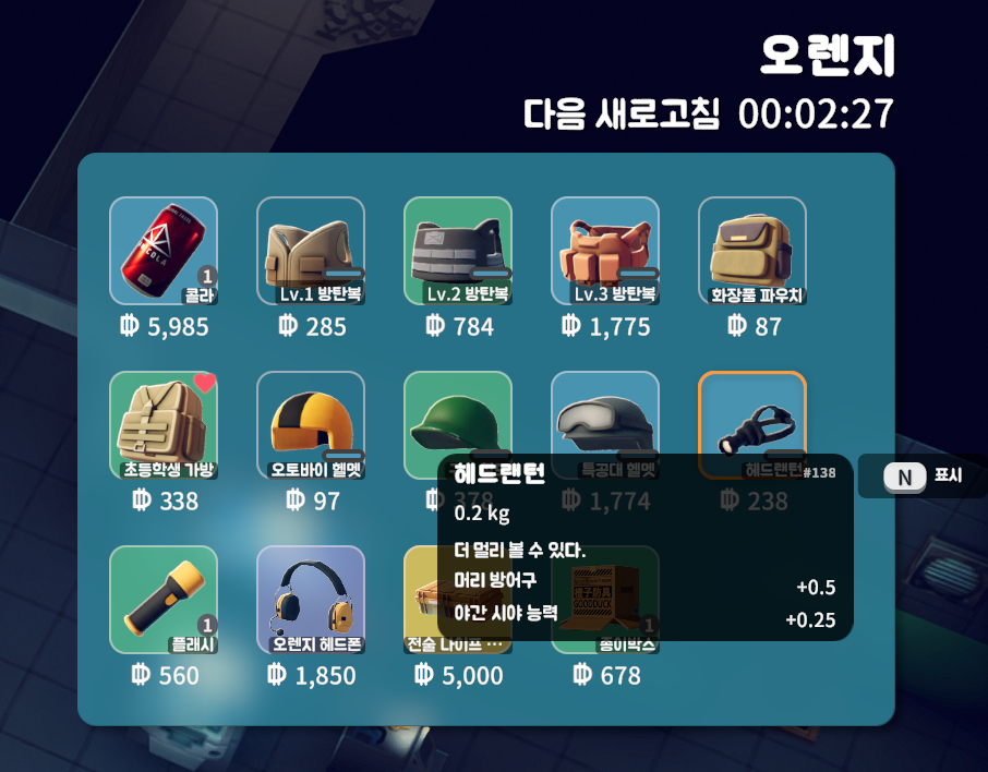 아이템 해제 : 헤드랜턴