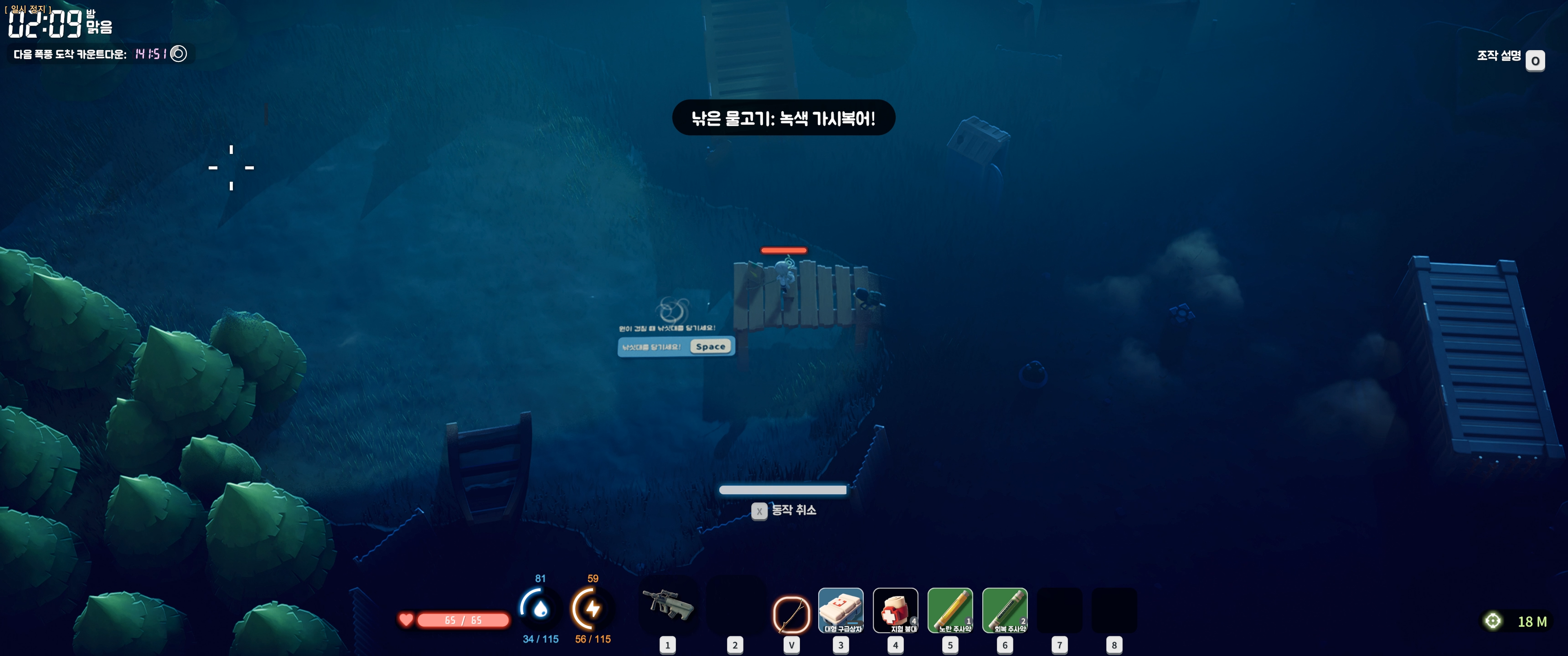 녹색 가시복어 : 제로존 11시 방향 낚시터 , 밤, 맑음 , 미끼 : 변기 세정제