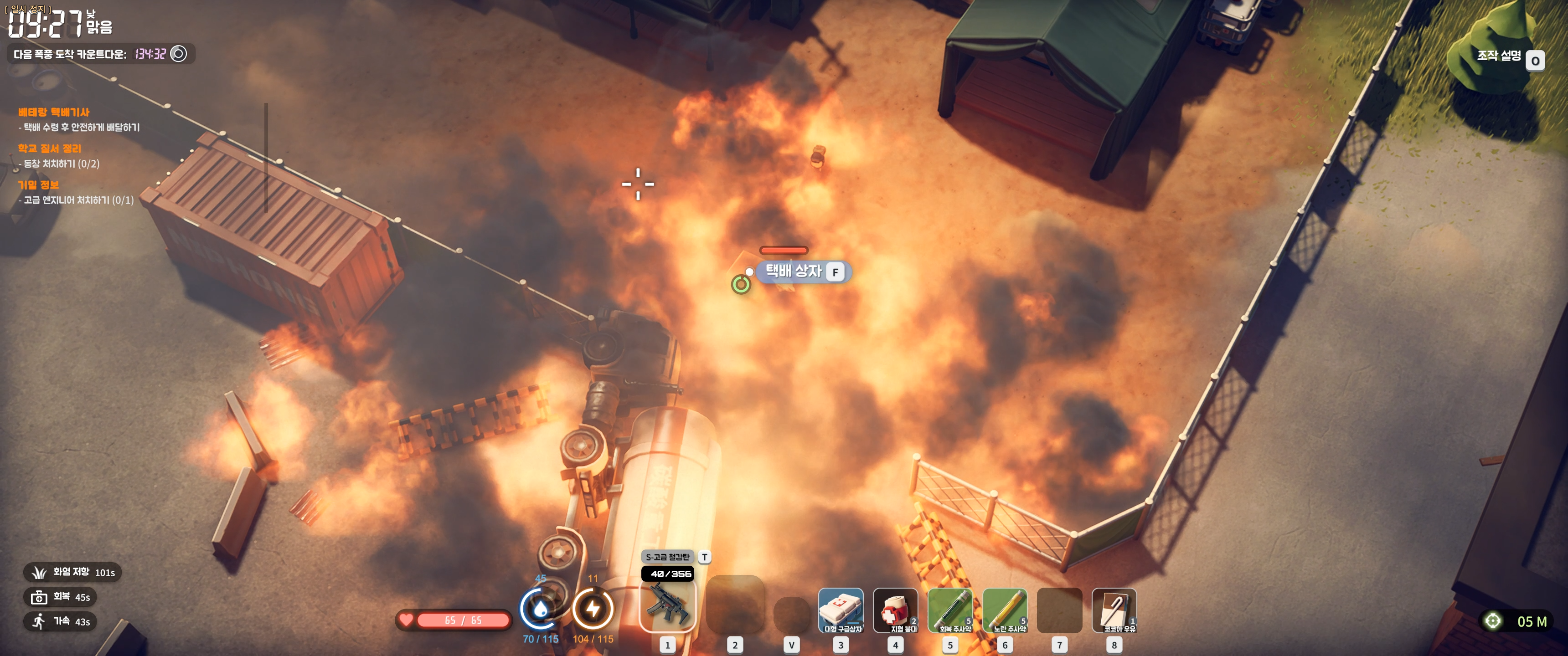 [농장마을] 의 용병캠프 입구의 화염속에 있는 택배를 보스 : 샷건 스폰위치인 레이더 기지에 배달하는 퀘스트 입니다.