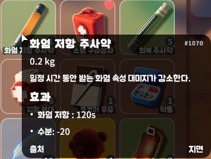 ※ 화염 저항 주사기는 데미지를 감소시킨다고 하지만,
