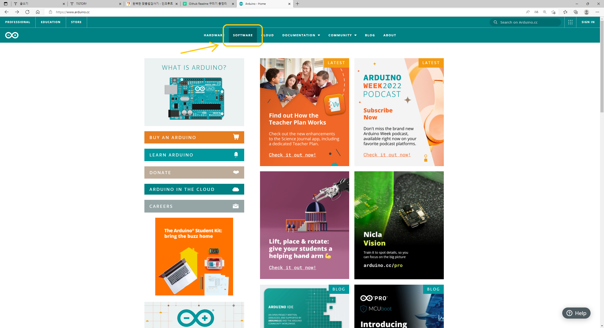 Arduino.cc 혹은, 주소창에 https://arduino.cc 를 입력하여 홈페이지로 이동합니다.