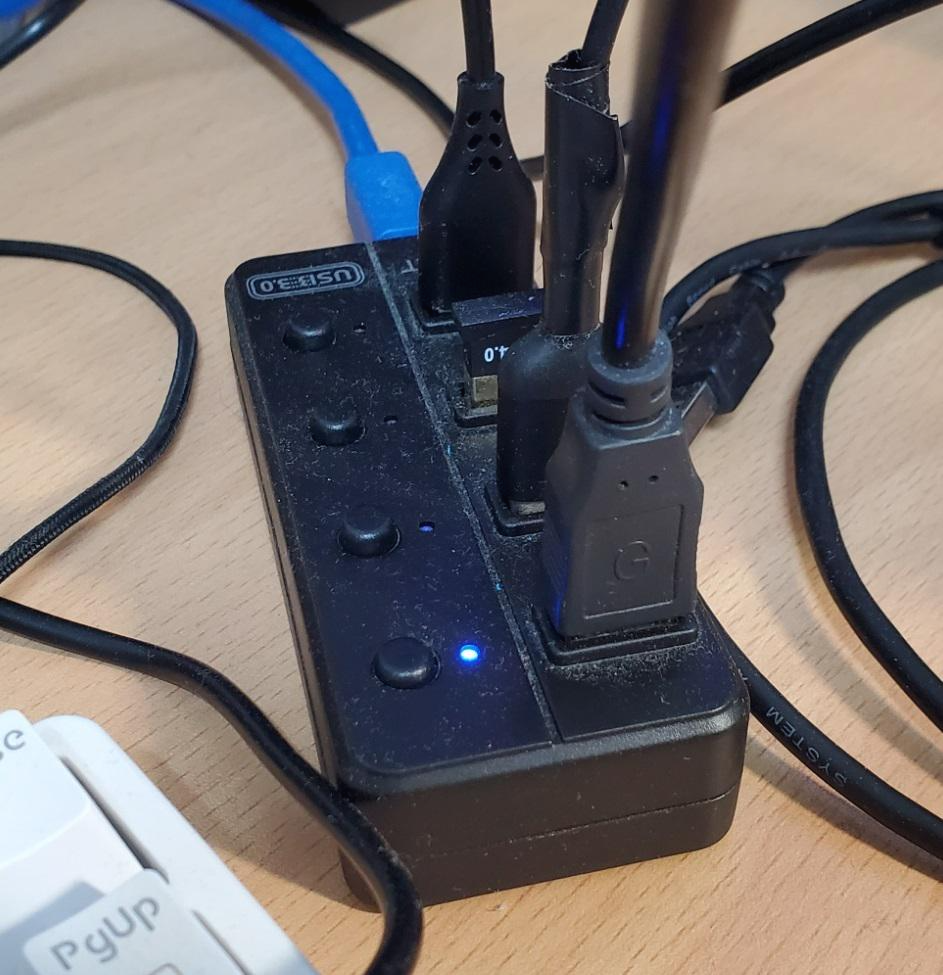 (글쓴이는 남는 포트가 없어 USB 허브에 연결했습니다.)